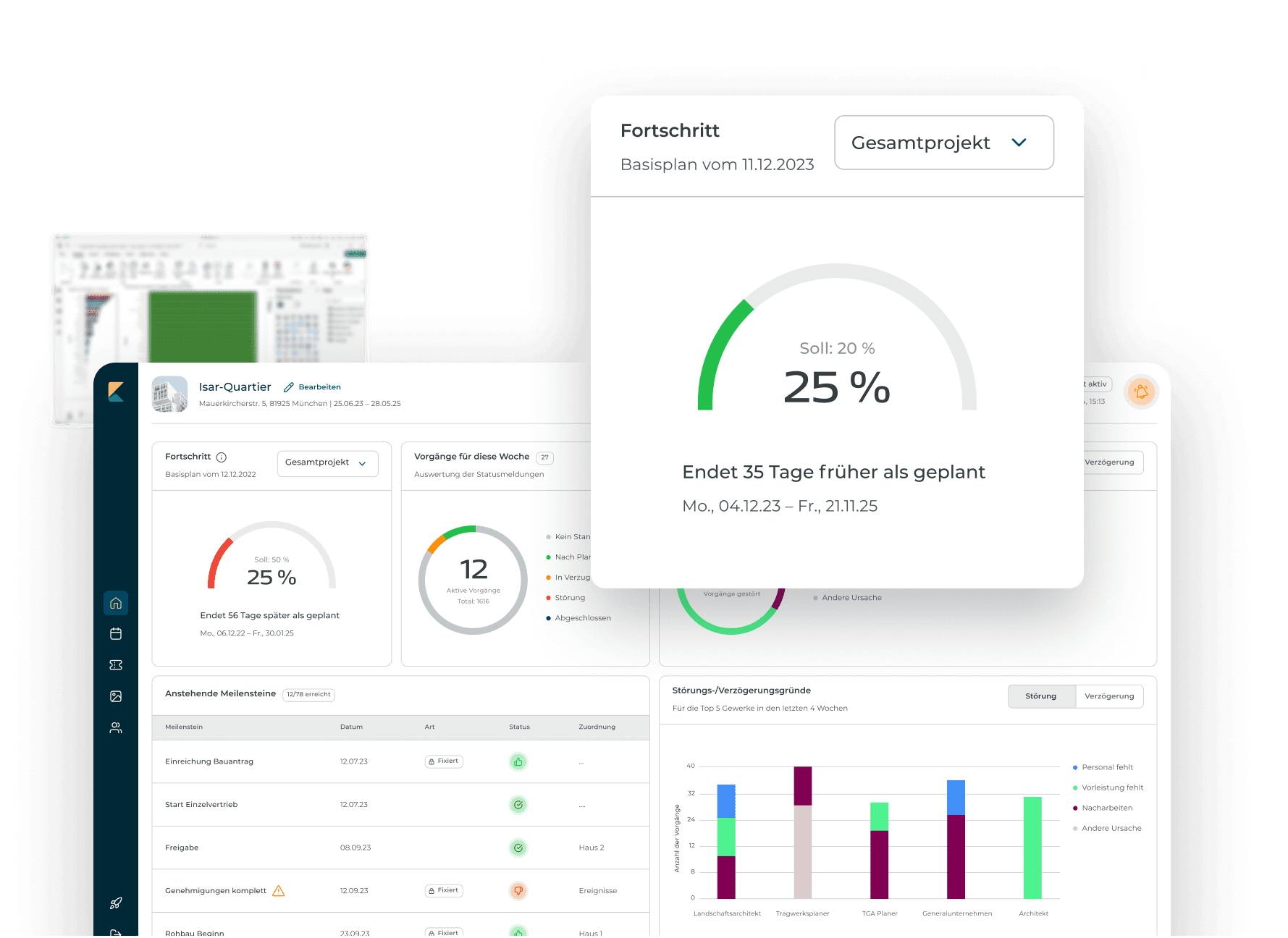 … in die Performance deiner Bauprojekte. Inklusive aller wichtigen Kennzahlen auf einen Blick.