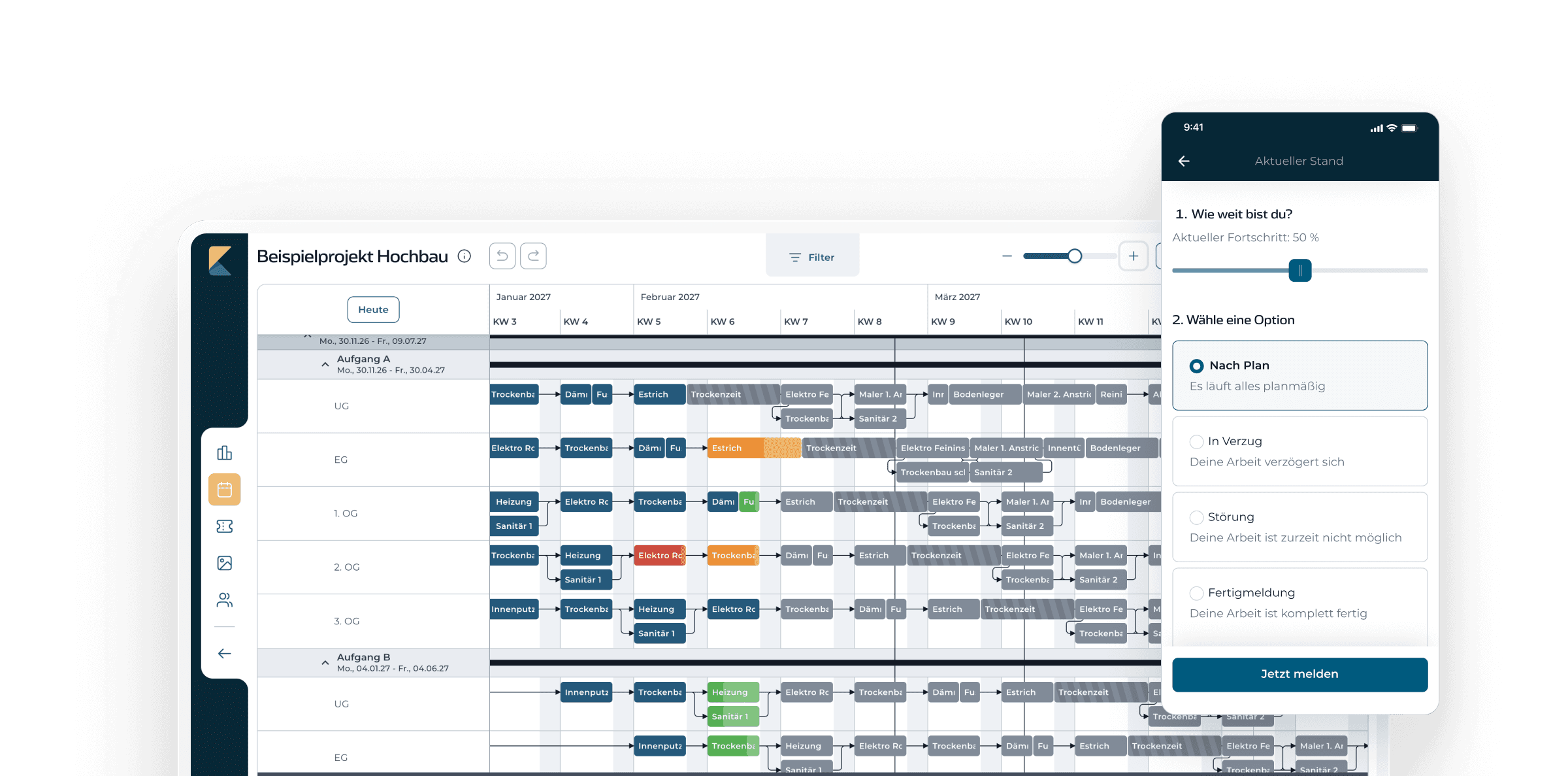 Dank der einfachen Handhabung kann der Baufortschritt in Echtzeit gemessen, bewertet und dokumentiert werden. koppla macht für uns die Terminplanung und -steuerung einfacher und schneller denn je.