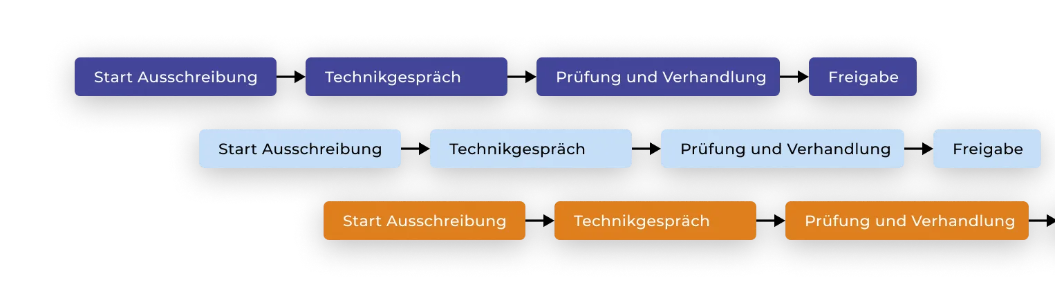 Durch Abhängigkeiten zwischen den notwendigen Schritten behältst Du den Vergabestart für alle Unternehmen immer im Blick.