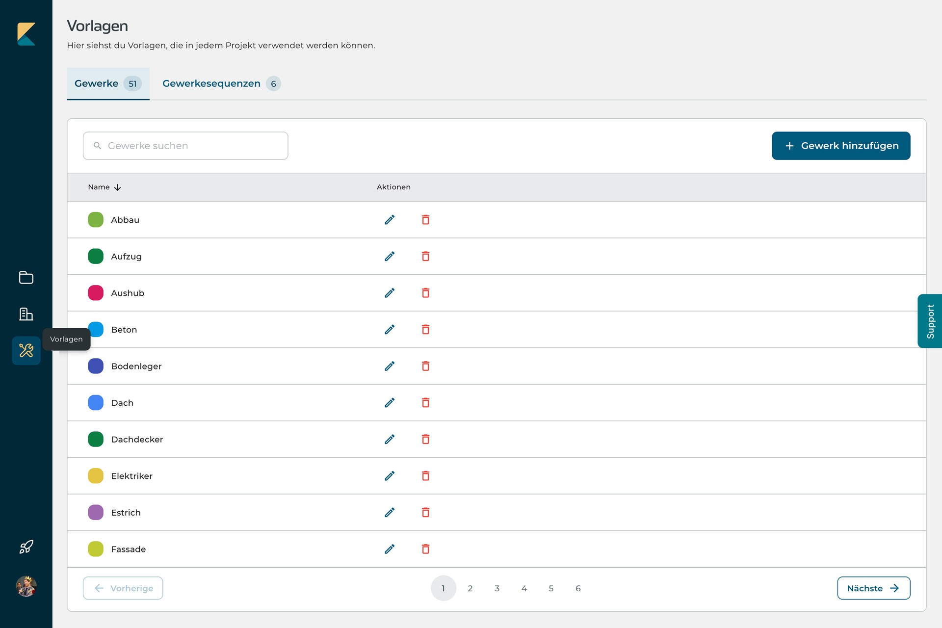 Bei koppla werden die Gewerke automatisch für alle Bauprojekte übernommen – so entsteht von ganz allein ein Standard, den jeder und jede versteht.