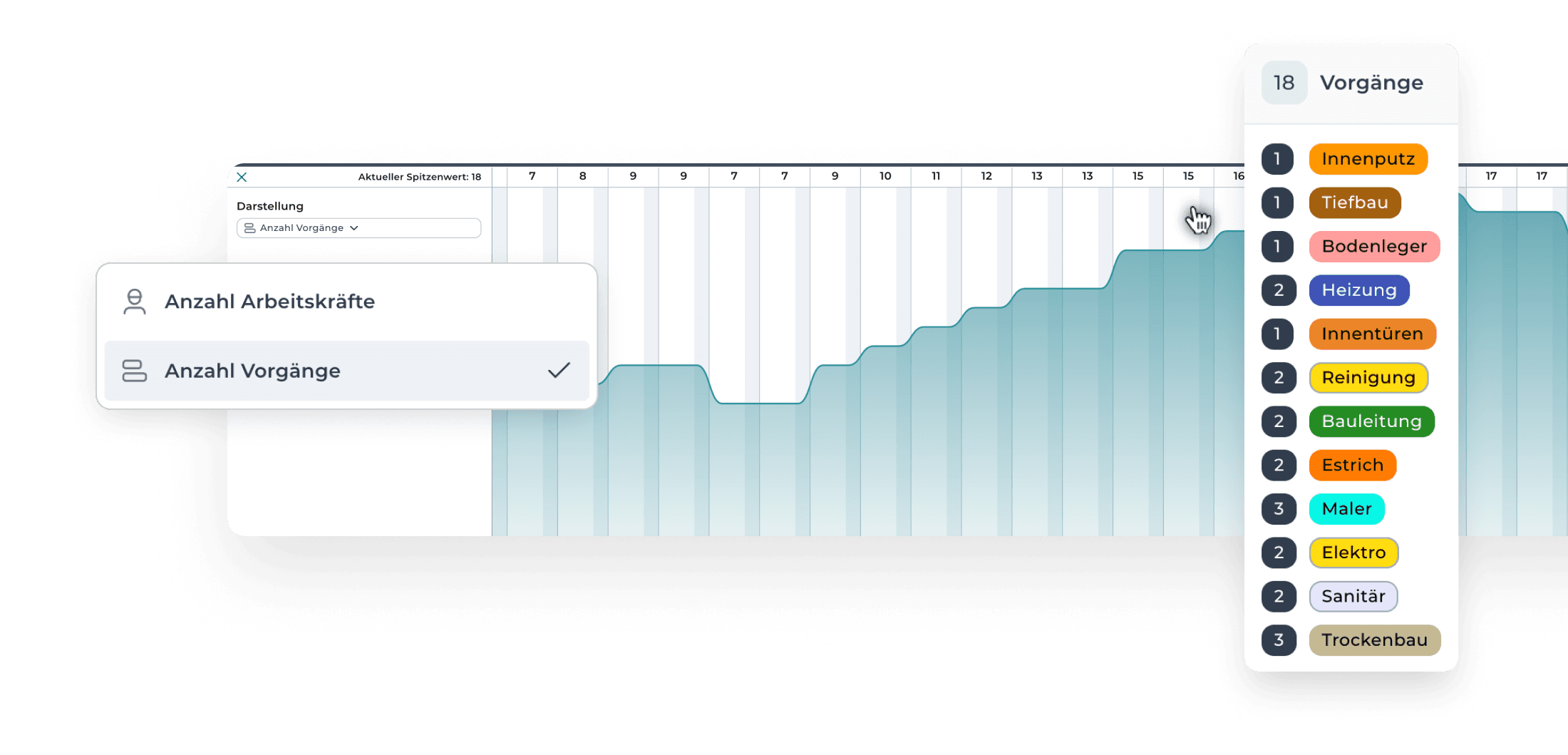 Verfolge Fortschritte aller Gewerke und Fachplaner in Echtzeit.