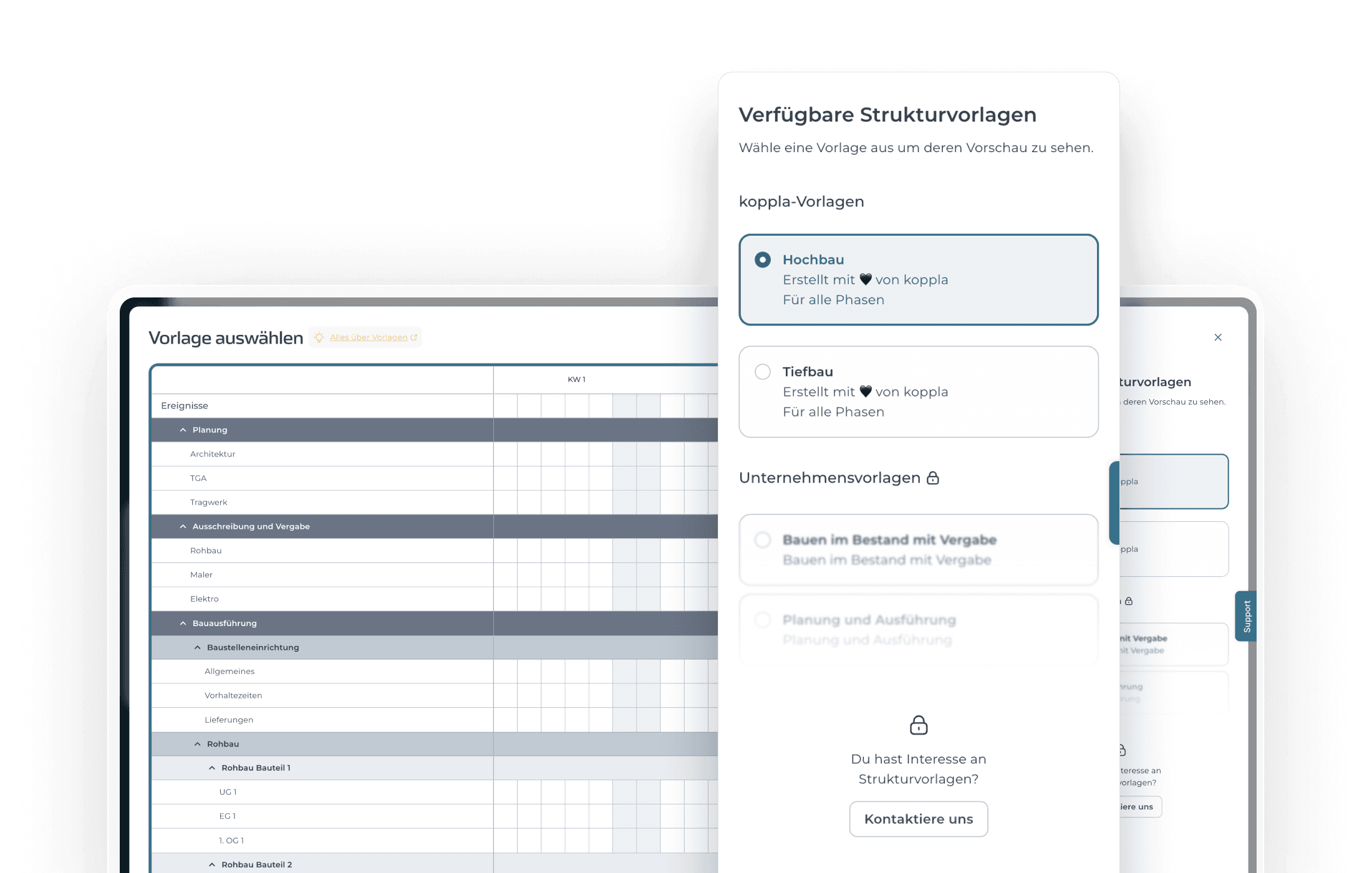 Verlässliche Abfolgen: Beschleunige deine Planung, indem Du Vorlagen für wiederkehrende Prozess- oder Gewerkeabfolgen anlegst. Das sorgt für weniger Konflikte und Umplanungen.